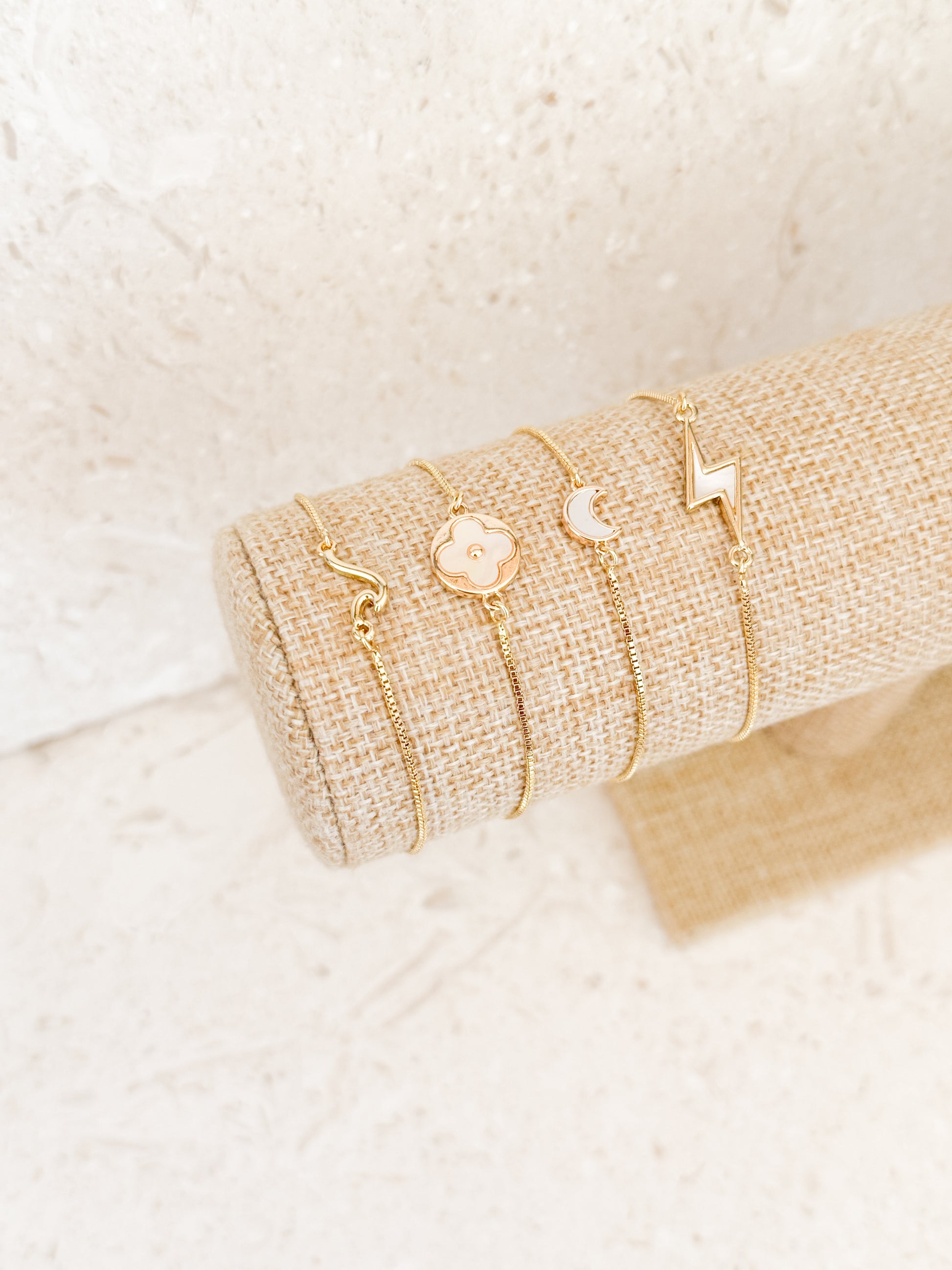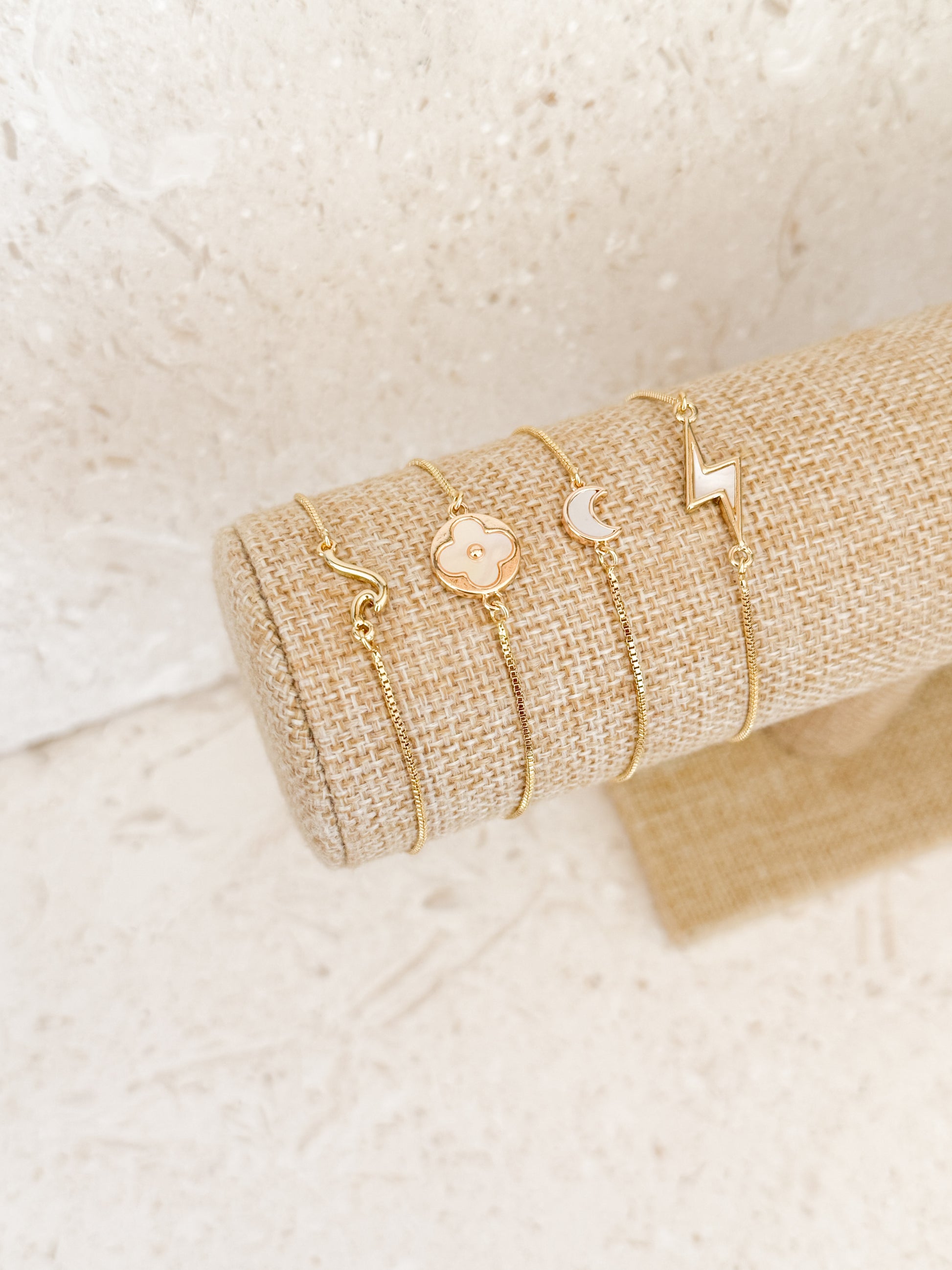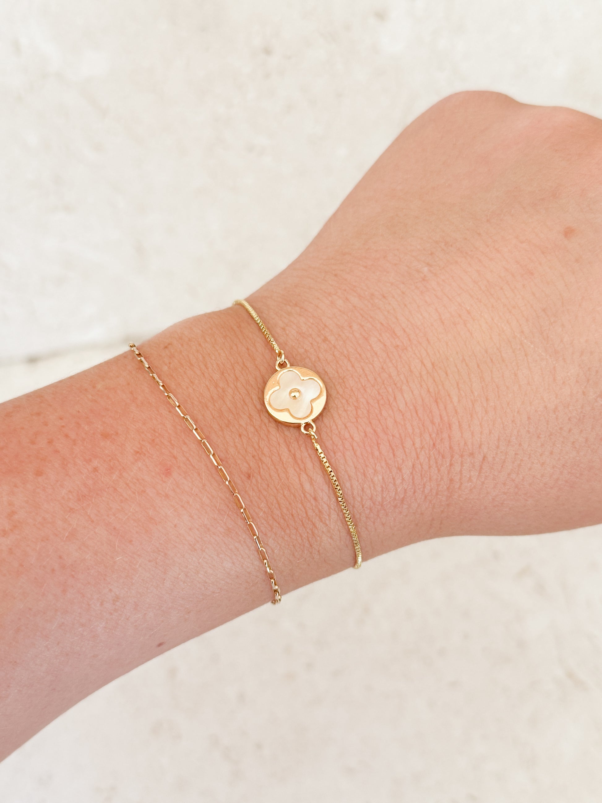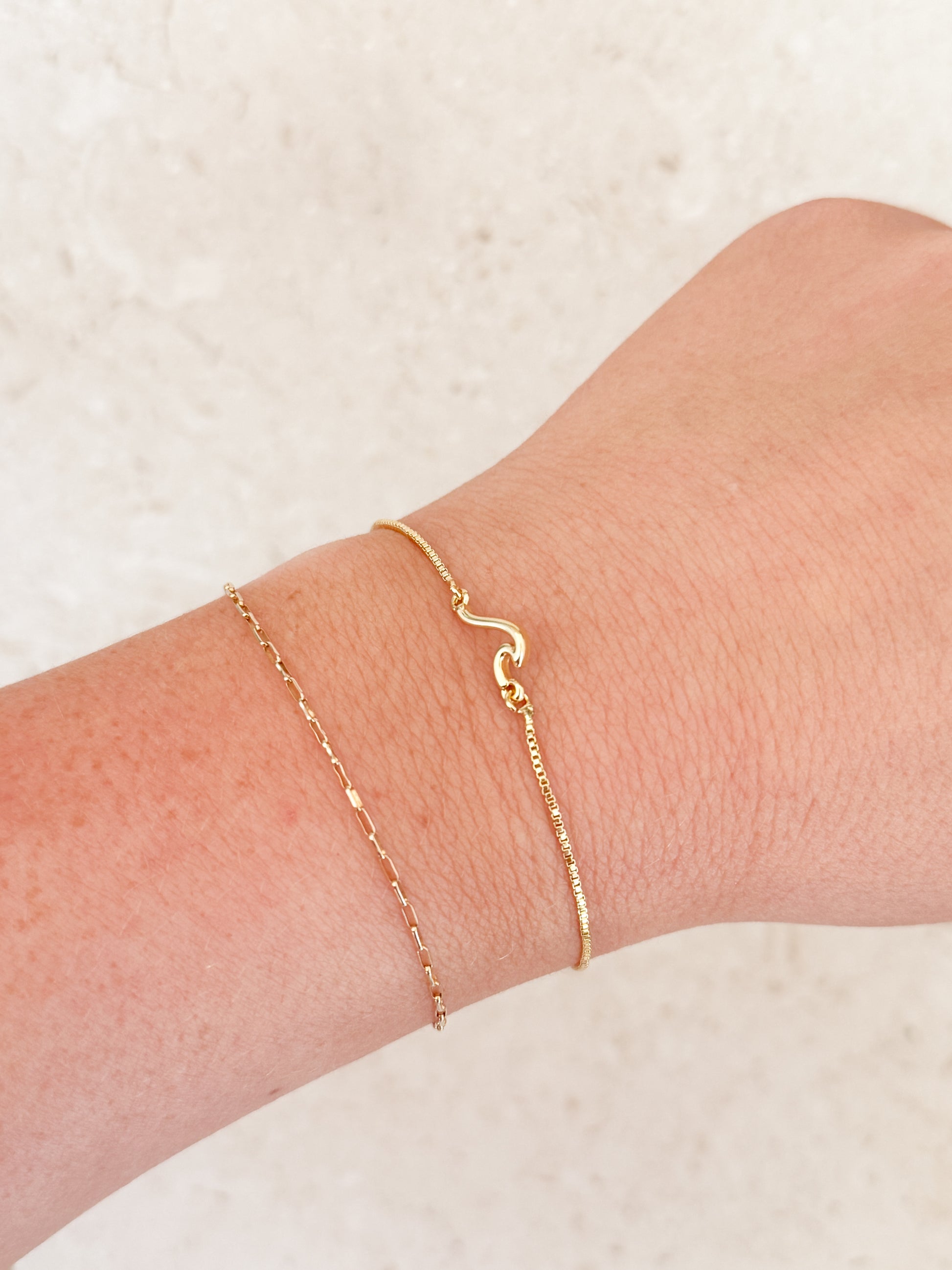 A delicate, lightweight 18k gold plated chain bracelet with an easy sliding clasp for a custom fit. Minimal and timeless, perfect for everyday wear or effortless layering.