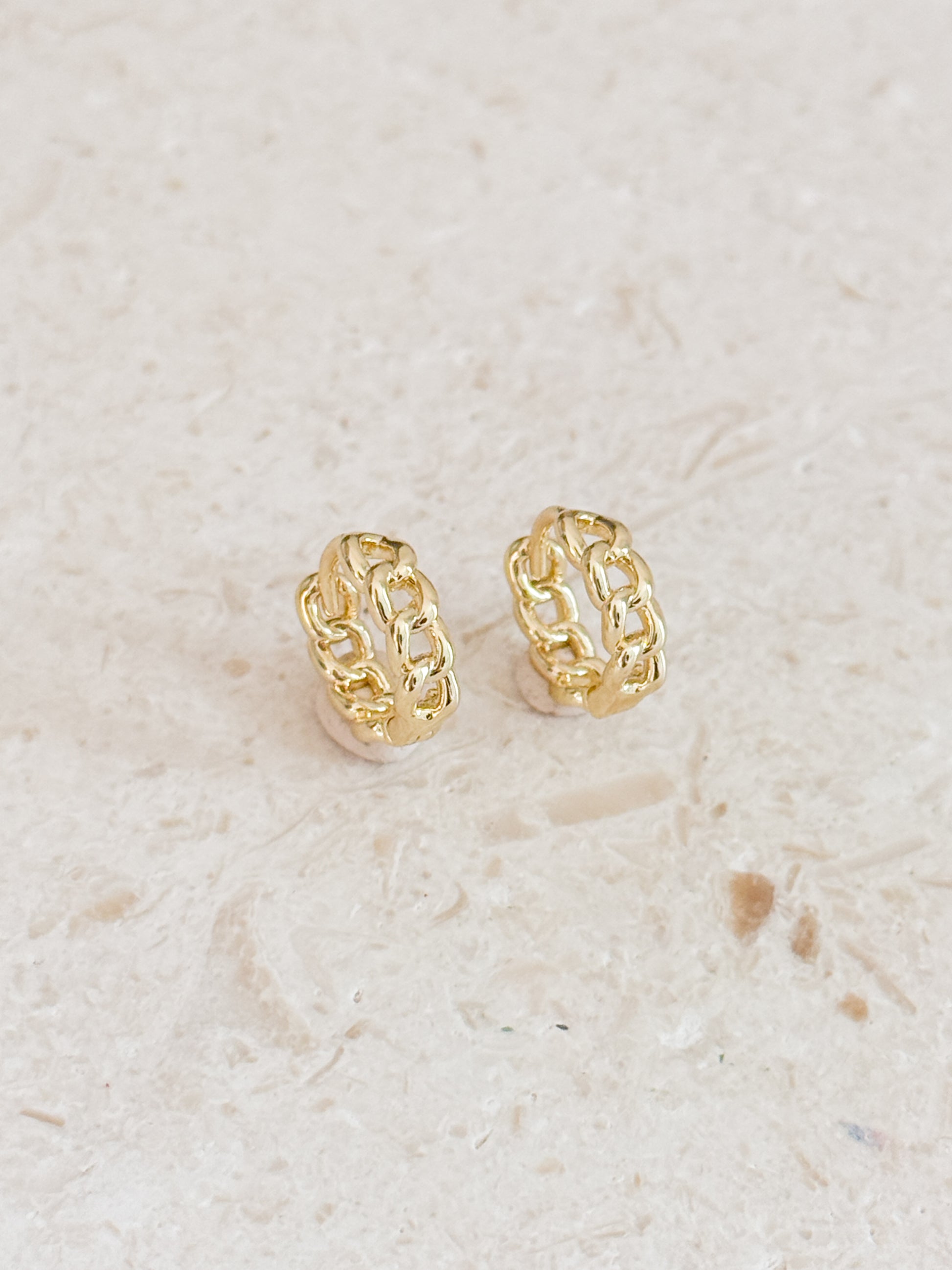 Chunky gold chain huggie earrings featuring a bold link design. Comfortable, modern, and made for everyday wear.