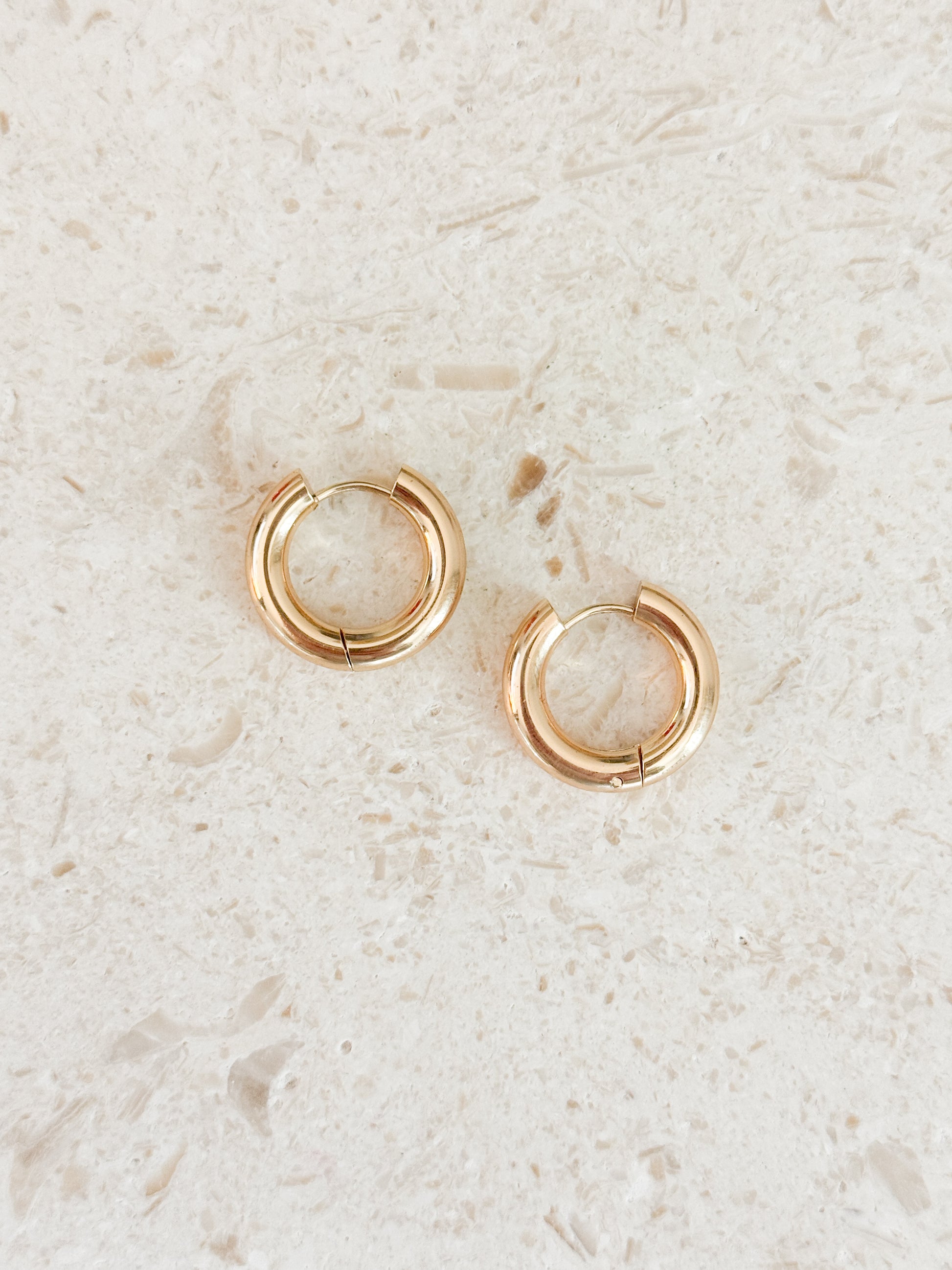 These Classic Gold Hoops are an essential must have in your collection. Perfect alone or as a base for our charms. This design is timeless, bold, and a must have!