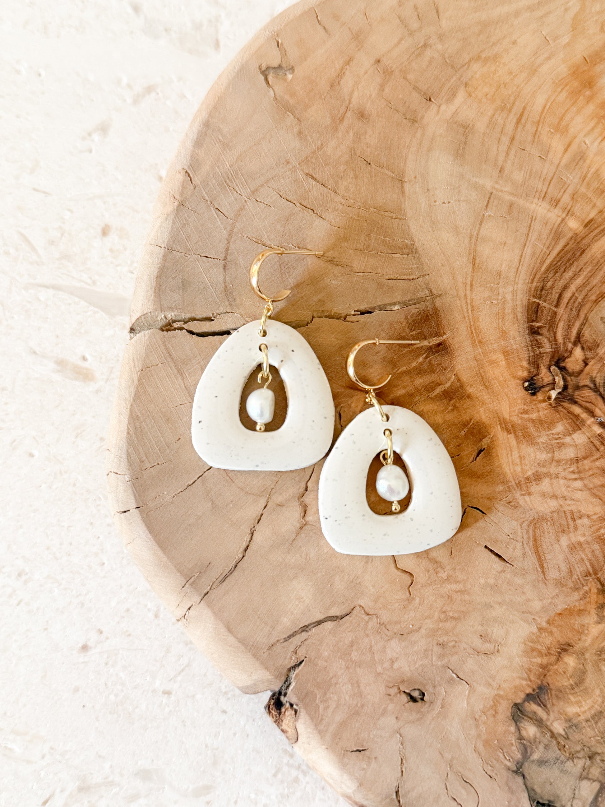 Hand-sculpted clay arches featuring a delicate freshwater pearl drop. Lightweight with gentle movement, these earrings bring an organic, elevated statement to everyday wear.