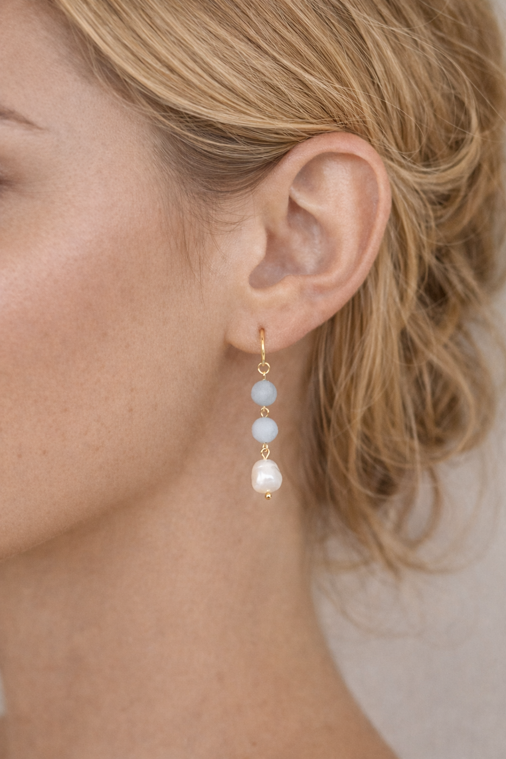 The Delia Dangles are the epitome of coastal beauty. Delia meaning “from the sea”. Soft, elegant, and finished with 18k gold filled findings. Lightweight, modern, and thoughtfully made for everyday wear.