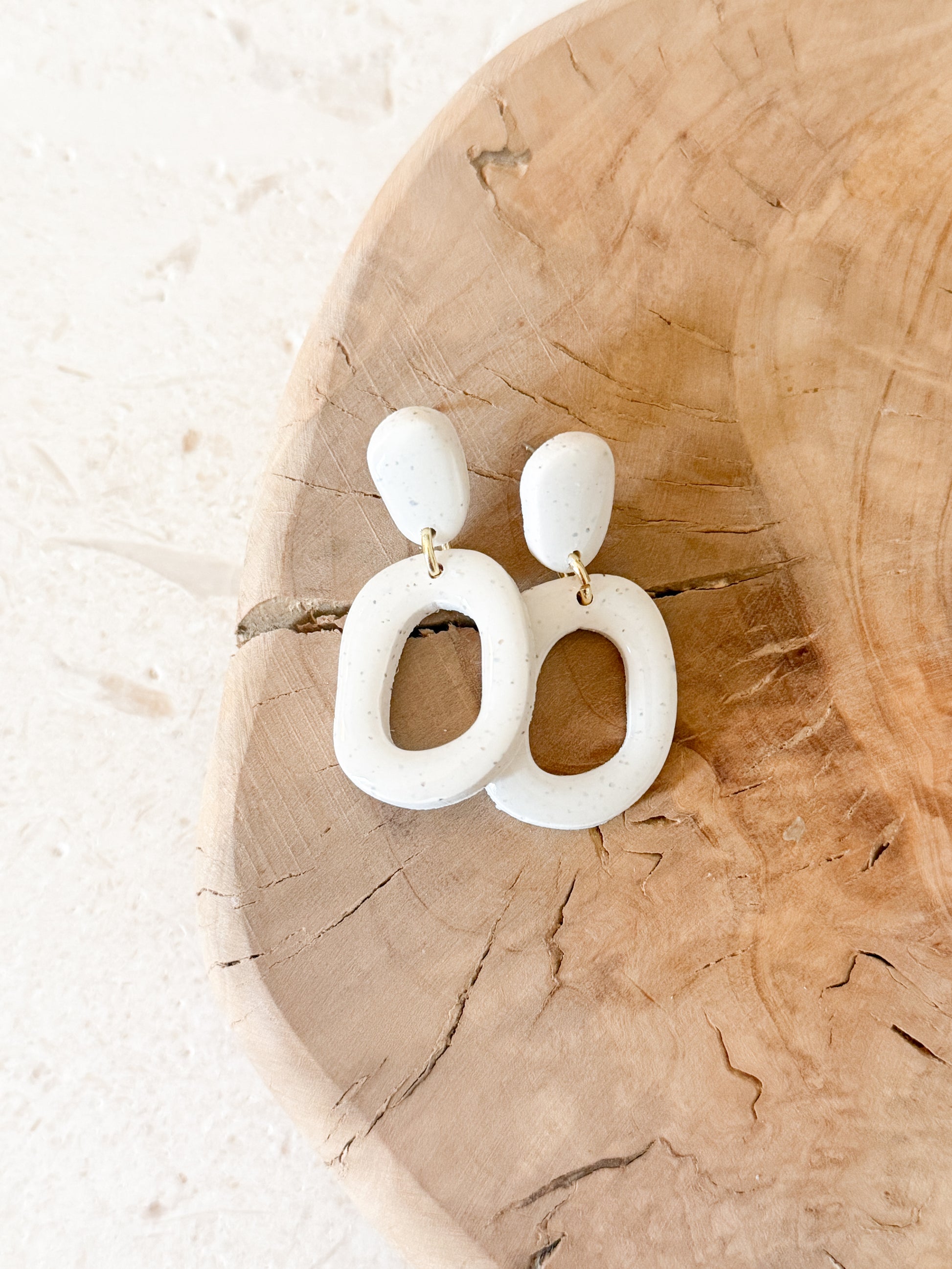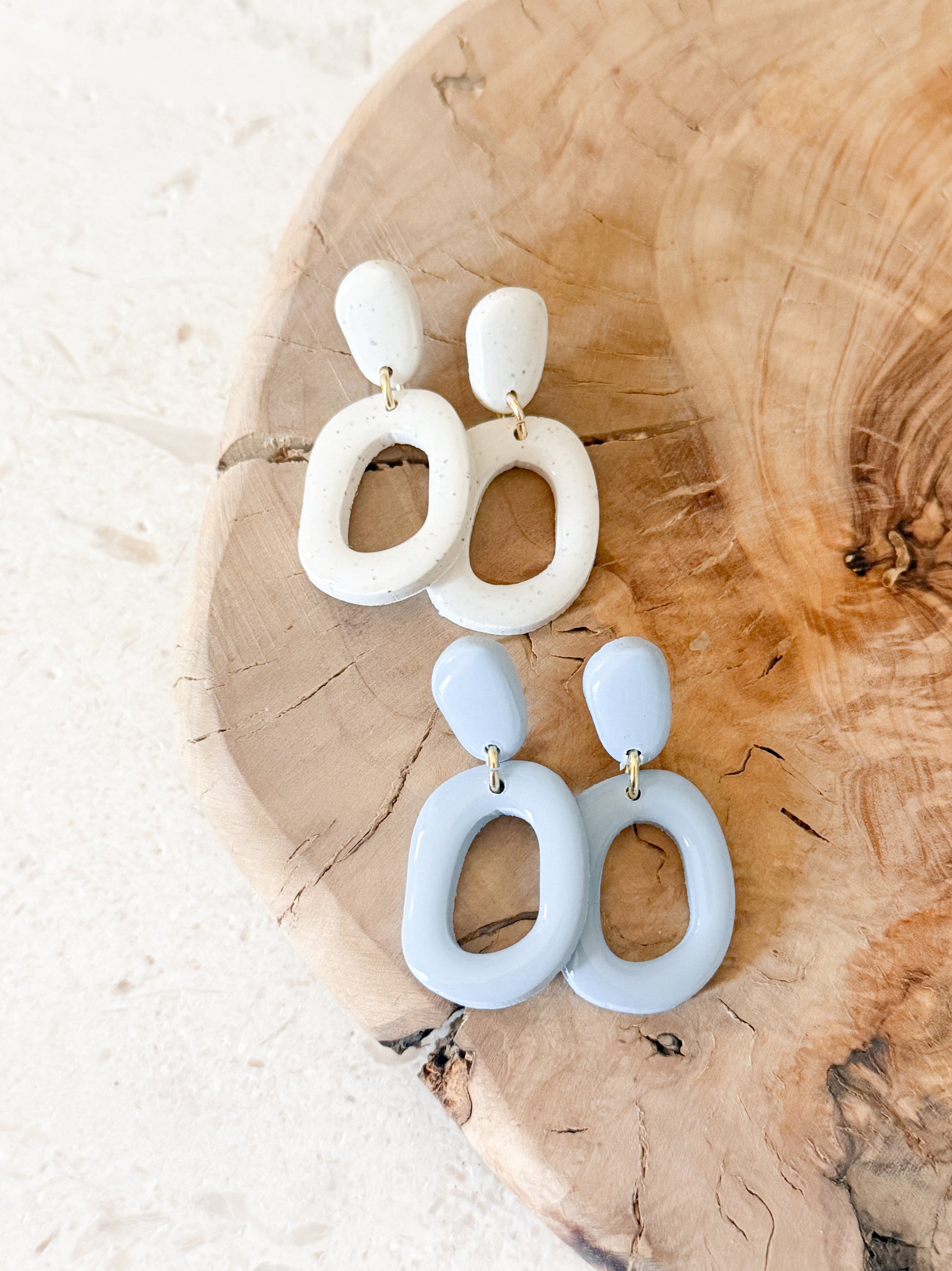 Smooth, sculpted clay shapes sealed with resin for a long lasting SHINE. Designed to feel airy, modern, and effortlessly refined.